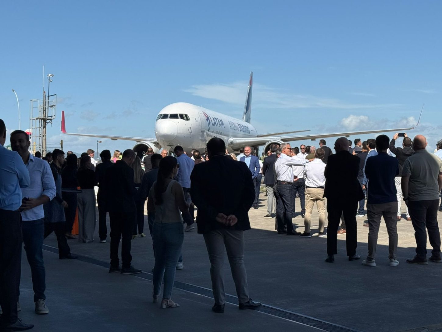 O evento reuniu aproximadamente 200 convidados, entre autoridades, parceiros logísticos e lideranças do setor, que acompanharam de perto a operação do cargueiro. A aeronave Boeing 767-300, operada pela Bringer Air Cargo, em parceria com a Latam Cargo, pousou no terminal às 8h42, procedente de Miami.